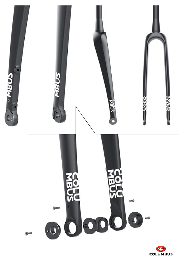 Columbus’ brand new graphics, designed for the painted forks-range, has been specifically designed to perfectly match the all the possible colors and paint-schemes of the cycling world: from the traditional and elegant steel frames to the most updated and aggressive monocoques, minimal & racing. To keep and valorize Columbus identity and storytelling also on the Ready-To-Paint version, Columbus provides with each fork a set of special adhesive painting masks. These stencils, bearing Columbus logo, allow to replicate Columbus graphics even on bicycles with custom-painted livery, with the possibility to match Columbus-logo colors with the palette of the frame.